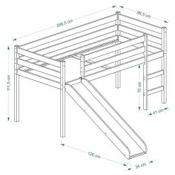 IDIMEX Hochbett Mit Rutsche BENNY Weiß, Vorhang, Turm U. Tunnel PRINZESSIN Pink/rosa