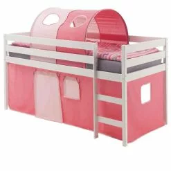 IDIMEX Hochbett ERIK Weiß Mit Vorhang 1 Tunnel PRINZESSIN, Pink/rosa