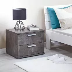 CARO-Möbel Nachttisch MAXIMA In Beton Dunkel Mit 2 Schubladen