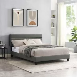 CARO-Möbel Polsterbett BEDFORD 140×200 Cm, Kunstleder In Grau