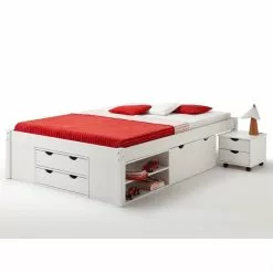 IDIMEX Bett Mit Stauraum SABRINA 140×200 Cm, Kiefer Massiv In Weiß