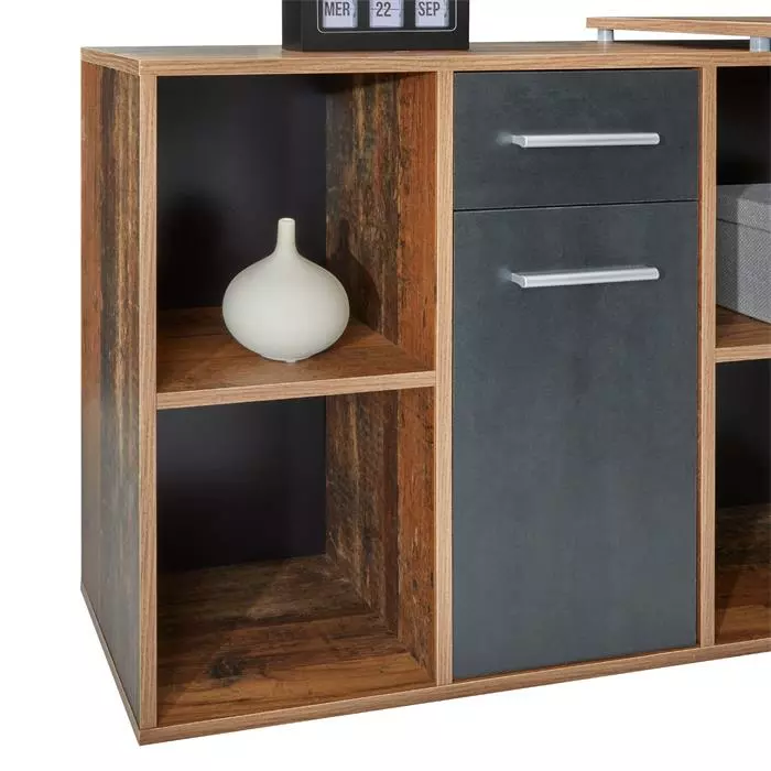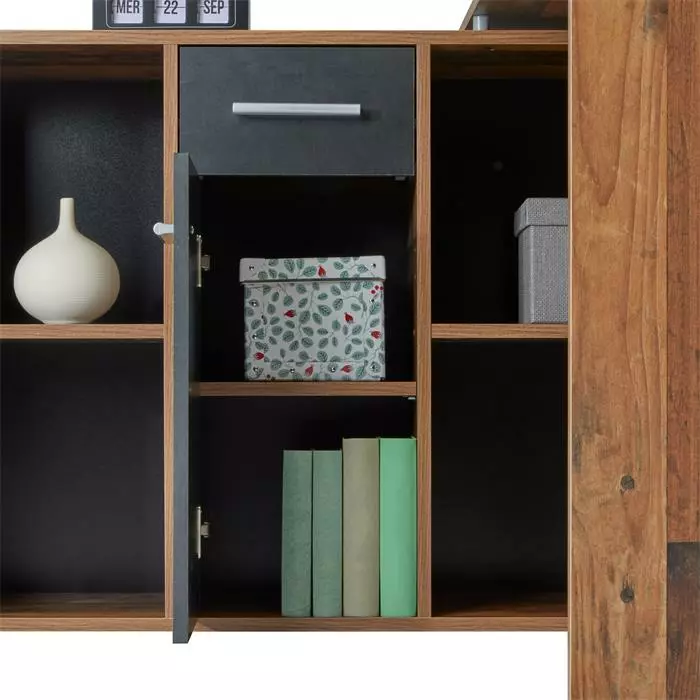 - 4 offene Fächer, 1 Schublade und 1 Tür