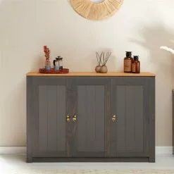 IDIMEX Sideboard BOLTON Mit 3 Türen, Kiefer In Anthrazit/braun