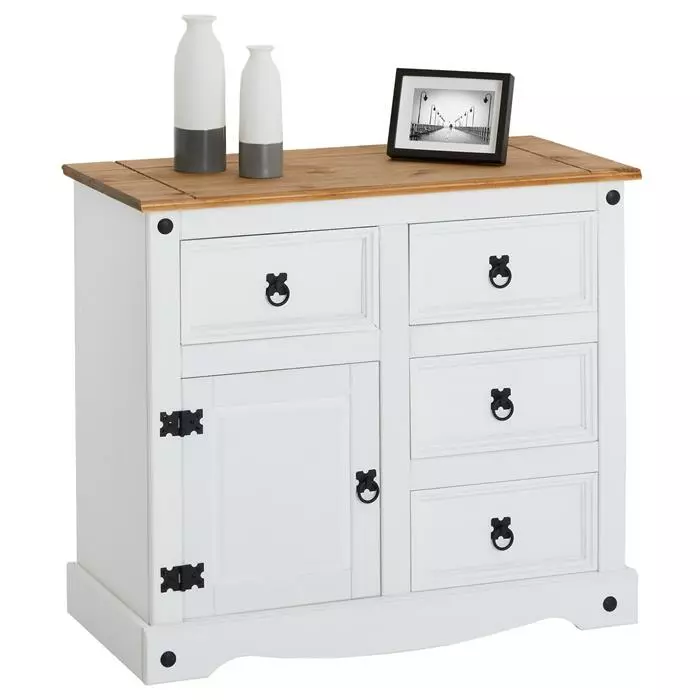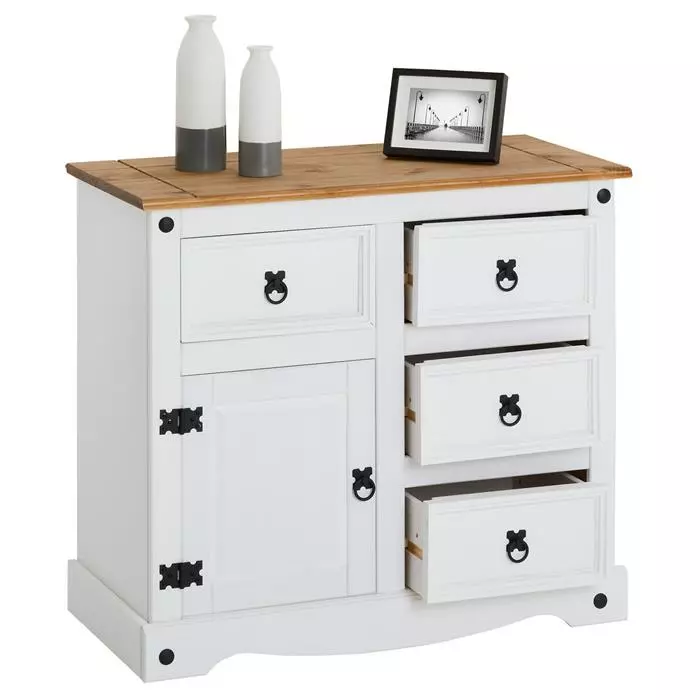 IDIMEX Sideboard PARIS Aus Massiver Kiefer In Weiß/braun Mit 2 Schubladen Und 3 Türen