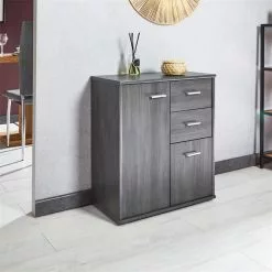 CARO-Möbel Kommode LOCARNO 2 Türen, 2 Schubladen In Esche Grau