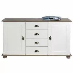 IDIMEX Sideboard COLMAR, Kiefer Massiv Weiß/taupe, Mit 2 Türen Und 4 Schubladen