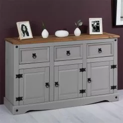 CARO-Möbel Mexico Sideboard RAMON, Kiefer Massiv, Mit 3 Schubladen Und 3 Türen