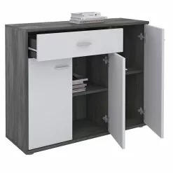 CARO-Möbel Sideboard ESTELLE Mit 3 Türen, 1 Schublade In Esche Grau/weiß