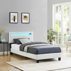 CARO-Möbel Polsterbett GLACE 90×200 Cm, LED Beleuchtung, Stoff Weiß
