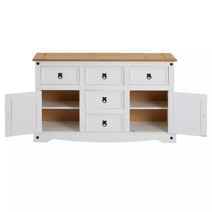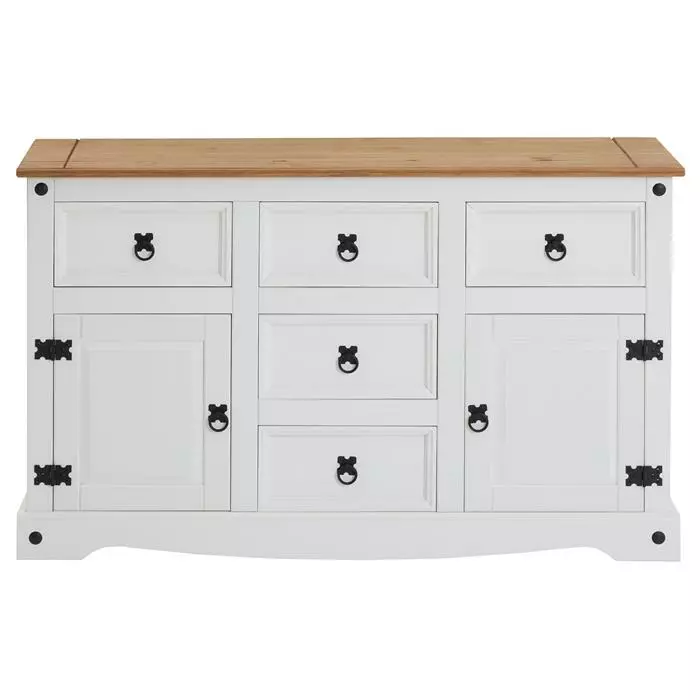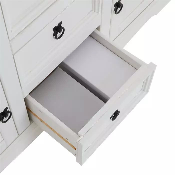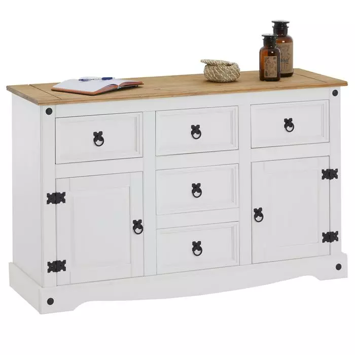 CARO-Möbel Mexico Sideboard RURAL Kiefer Massiv Mit 5 Schubladen Und 2 Türen In Weiß
