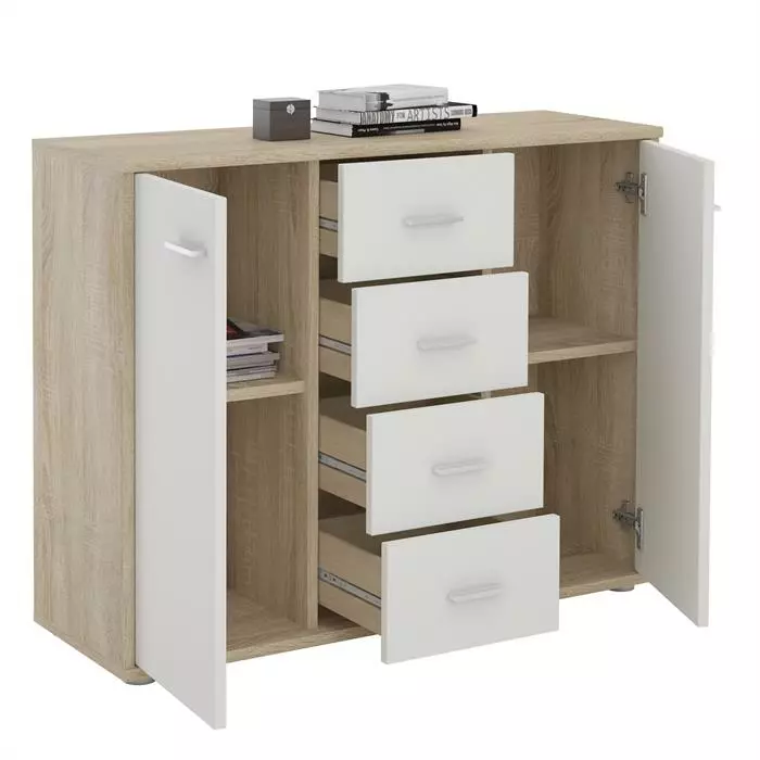 IDIMEX Sideboard COLMAR, Kiefer Massiv Weiß, Mit 2 Türen Und 4 Schubladen
