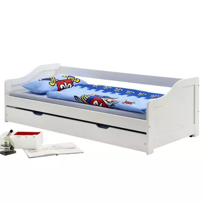 IDIMEX Bett Mit Stauraum JESSY 90×190 Cm, Mit Ausziehbett In Weiß