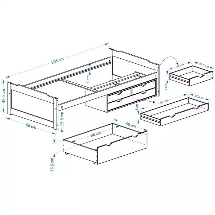 - Aufbaumaß: 98,5 x 49 x 205 cm (B x H x L)