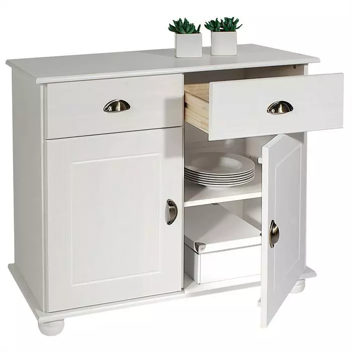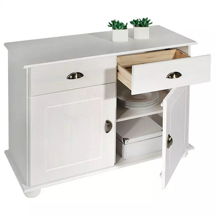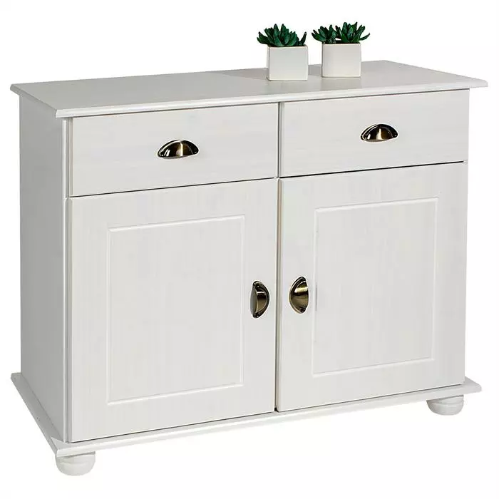CARO-Möbel Mexico Sideboard RURAL Kiefer Massiv Mit 5 Schubladen Und 2 Türen In Weiß