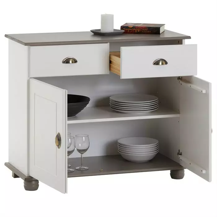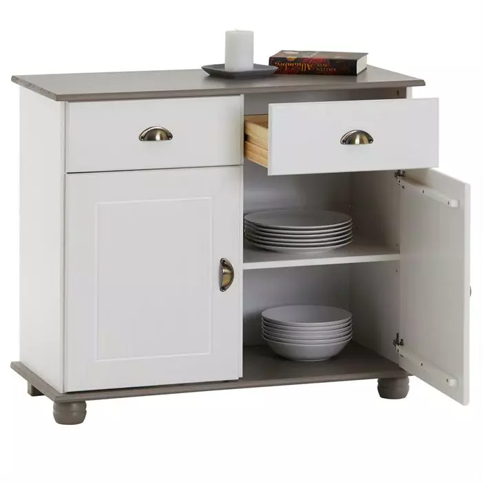 IDIMEX Sideboard COLMAR, Kiefer Massiv Weiß, Mit 2 Türen Und 4 Schubladen