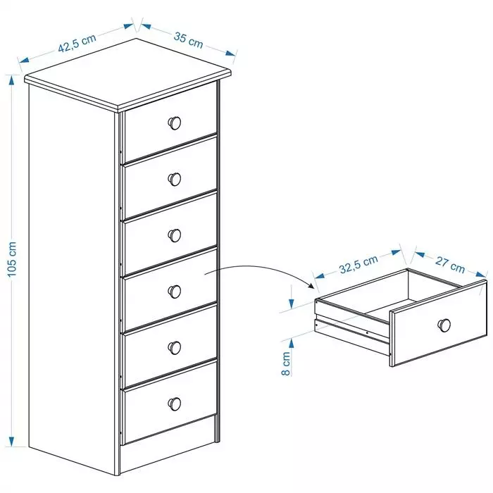 - Innenmaß der Schubladen (B/H/T): 32,5 x 12 x 27 cm