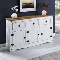 CARO-Möbel Sideboard CAMPO, Kiefer Massiv Weiß, Mit 3 Schubladen Und Türen