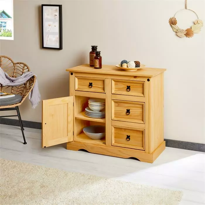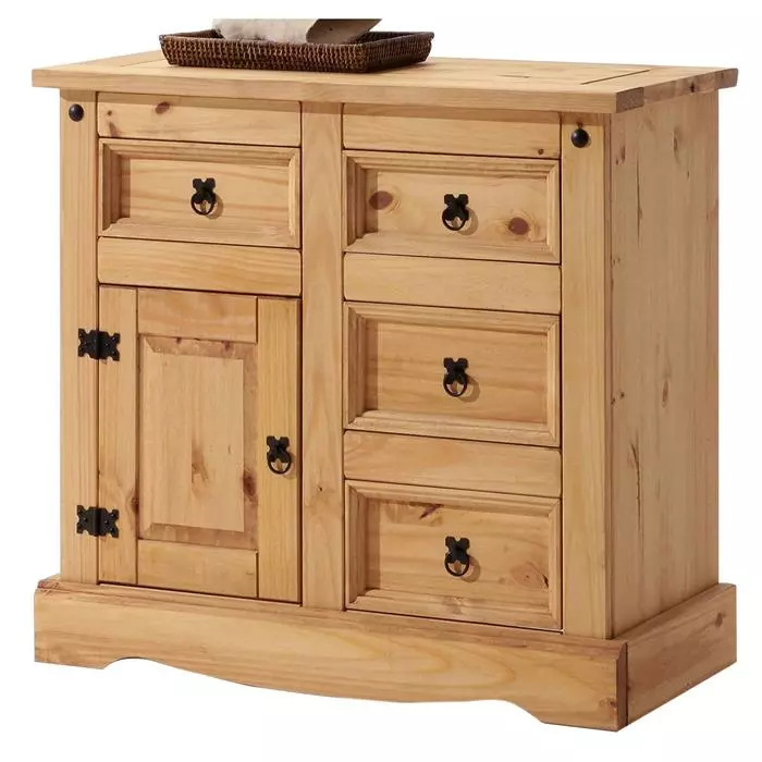 CARO-Möbel Mexico Sideboard RURAL Kiefer Massiv Mit 5 Schubladen Und 2 Türen In Weiß
