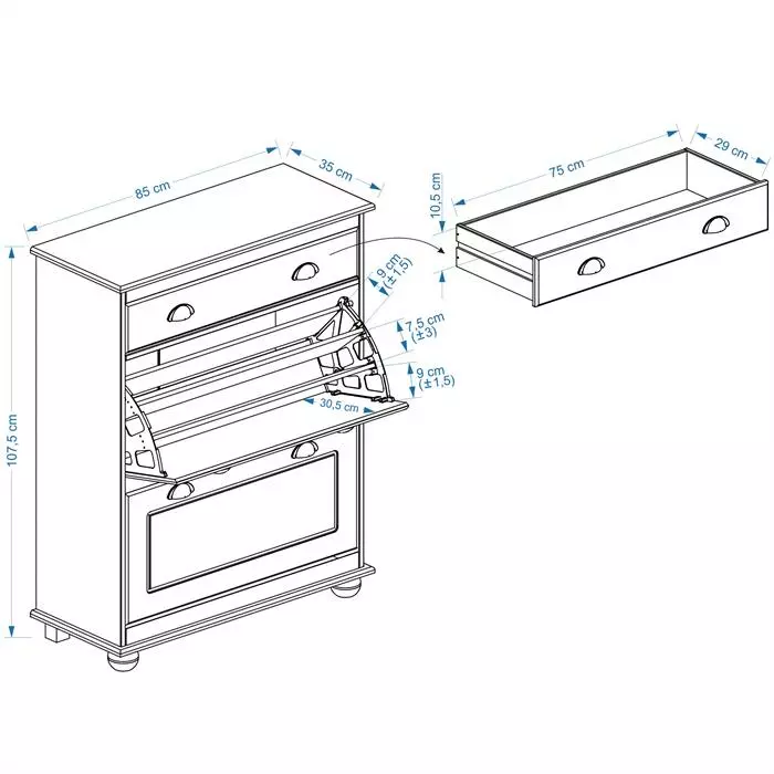 - Aufbaumaße: 85 x 107,5 x 35 cm (B x H x T)