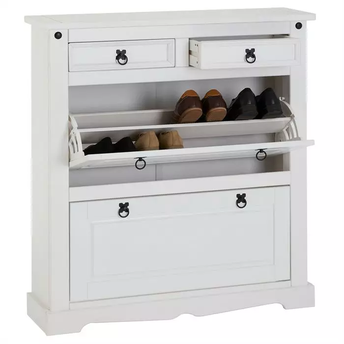 IDIMEX Schuhschrank TEQUILA, Kiefer Massiv, Mit 2 Schubladen Und 8 Fächer, Mexiko