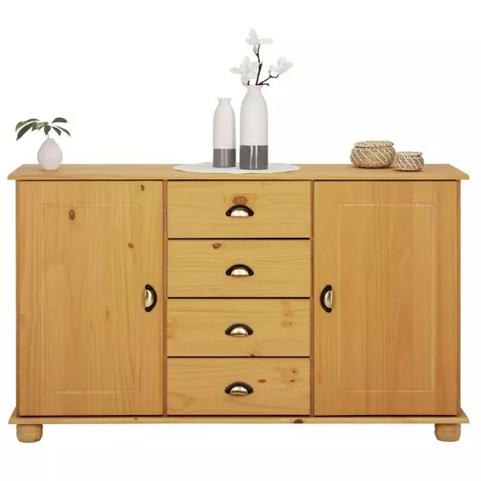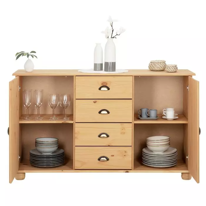 IDIMEX Sideboard COLMAR, Kiefer Massiv Weiß, Mit 2 Türen Und 4 Schubladen