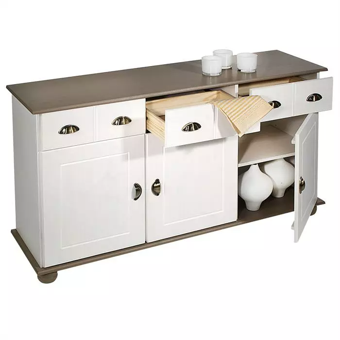 IDIMEX Sideboard COLMAR, Kiefer Massiv Weiß, Mit 2 Türen Und 4 Schubladen