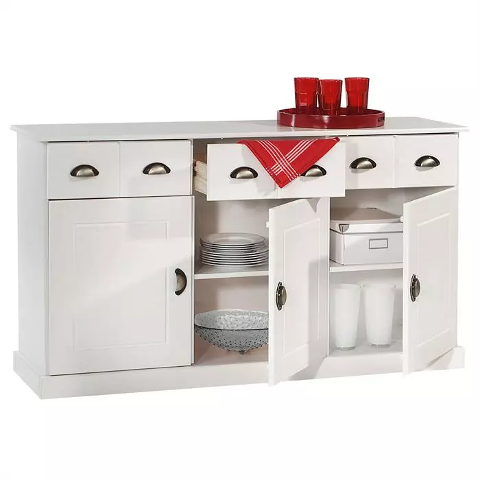 CARO-Möbel Mexico Sideboard RURAL Kiefer Massiv Mit 5 Schubladen Und 2 Türen In Weiß