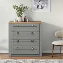 IDIMEX Kommode BOLTON Mit 4 Schubladen, Kiefer In Grau/braun