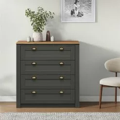 IDIMEX Kommode BOLTON Mit 4 Schubladen, Kiefer In Anthrazit/braun