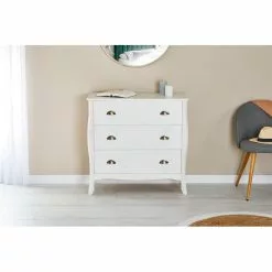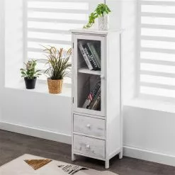 CARO-Möbel Vitrine ETANIA Weiß Mit 2 Schubladen Im Vintage Look