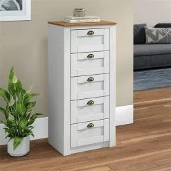 IDIMEX Kommode BOLTON Mit 5 Schubladen, Kiefer In Weiß/braun