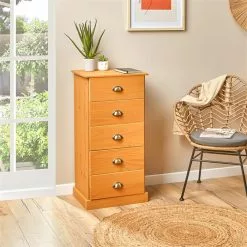 IDIMEX Kommode PARIS Mit 5 Schubladen Und Muschelgriffe Gebeizt/gewachst