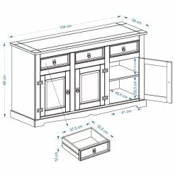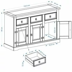 IDIMEX Sideboard TEQUILA, Kiefer Massiv Gebeizt, 3 Türen Und Schubladen, Mexiko