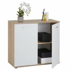 CARO-Möbel Kommode LOCARNO 2 Türen, 2 Schubladen In Betonoptik/weiß