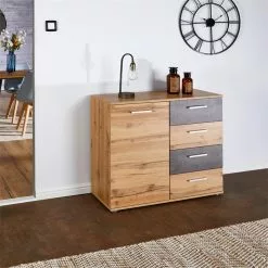 CARO-Möbel Kommode CHICAGO Wotan Eiche/Beton Dunkel, 4 Schubladen, 1 Tür