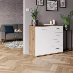 CARO-Möbel Kommode CHICAGO Wotan Eiche/weiß, 4 Schubladen, 1 Tür