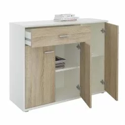CARO-Möbel Sideboard ESTELLE Mit 3 Türen, 1 Schublade Weiß/Sonoma Eiche